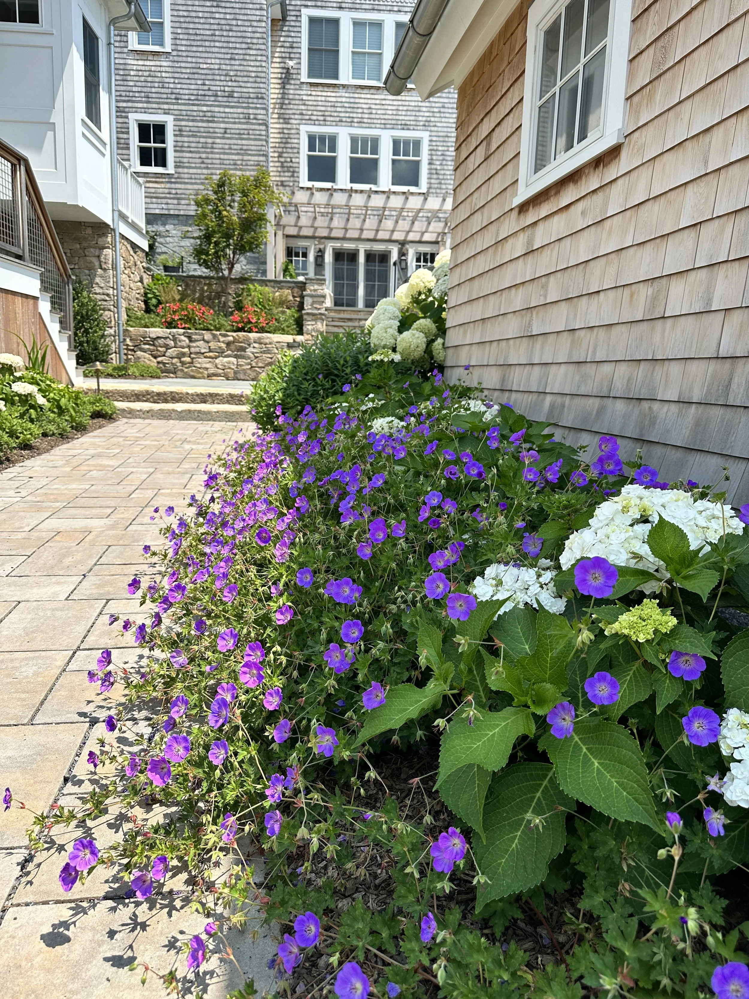 Lush plantings weave throughout the landscape, providing season-long color and texture. For the homeowner—an avid plant lover with a particular fondness for long-blooming perennials—the garden offers continuous interest and a vibrant backdrop for outdoor living.